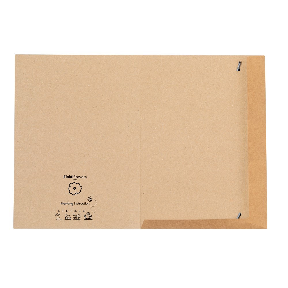 Die Dokumentenmappe „Wildblumensamen“ ist nicht nur praktisch, sondern auch umweltfreundlich. Hergestellt aus recyceltem Karton bietet sie Platz für Dokumente im A4-Format. Doch das Besondere an dieser Mappe sind die enthaltenen Wildblumensamen. Einfach die Mappe schließen, die Samen einstreuen und schon bald erblüht ein buntes Blumenmeer. Eine perfekte Kombination aus Funktionalität und Naturverbundenheit.