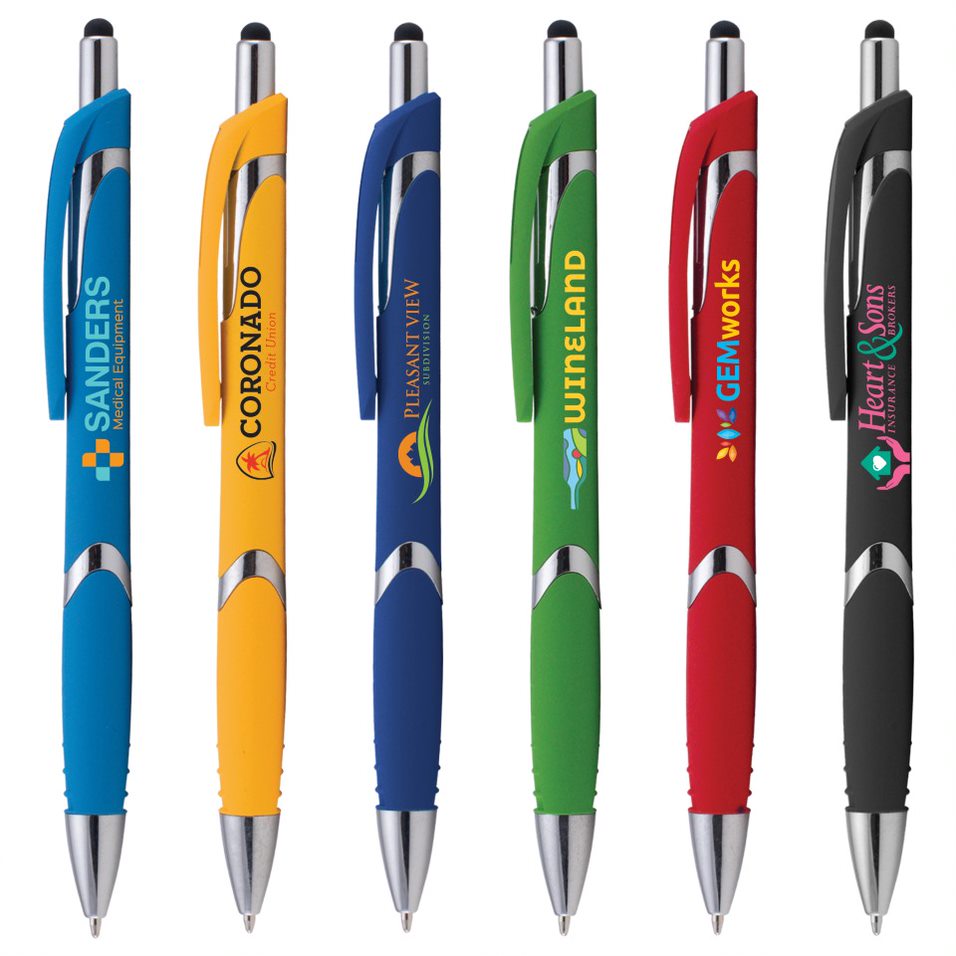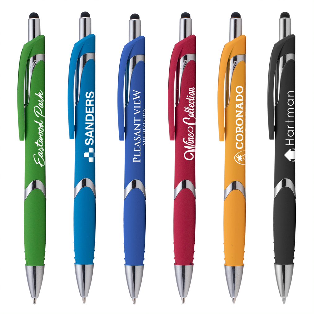 Dieser Kugelschreiber „NuvoPoint“ aus Kunststoff überzeugt durch sein gummiertes Soft-Touch-Gehäuse, einen ergonomischen Griff und stilvolle Chromakzente. Zusätzlich ist er mit einem Touchpen ausgestattet, der sich ideal für die Nutzung mit allen gängigen Touchscreen-Geräten eignet. Dieses moderne Schreibgerät ist die perfekte Wahl, um Ihre Marke wirkungsvoll zu präsentieren und Ihre Botschaft gezielt zu verbreiten!