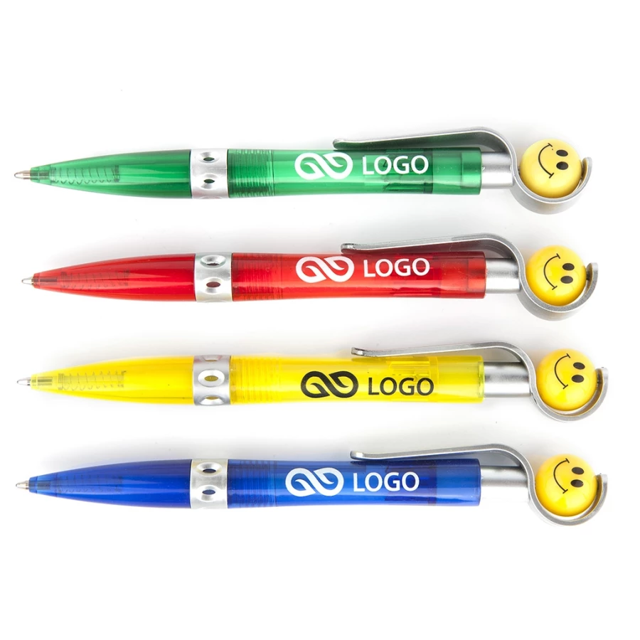 Der Kugelschreiber „Smile“ ist ein fröhlicher und farbenfroher Werbeartikel für alle, die nach originellen und ungewöhnlichen Werbegeschenken suchen. Sein einzigartiges Design und der Druckknopf, verziert mit einer gelben Kugel mit lächelndem Gesicht, erinnert an ein Emoji. Der Kugelschreiber Smile eignet sich hervorragend als Geschenk für Kinder, kann aber auch ein positiver und fröhlicher Hingucker auf jedem Schreibtisch sein. Sein Gehäuse besteht aus transparentem, farbigem ABS-Kunststoff, auf dem problemlos Ihr Firmenlogo oder Werbeslogan platziert werden kann.