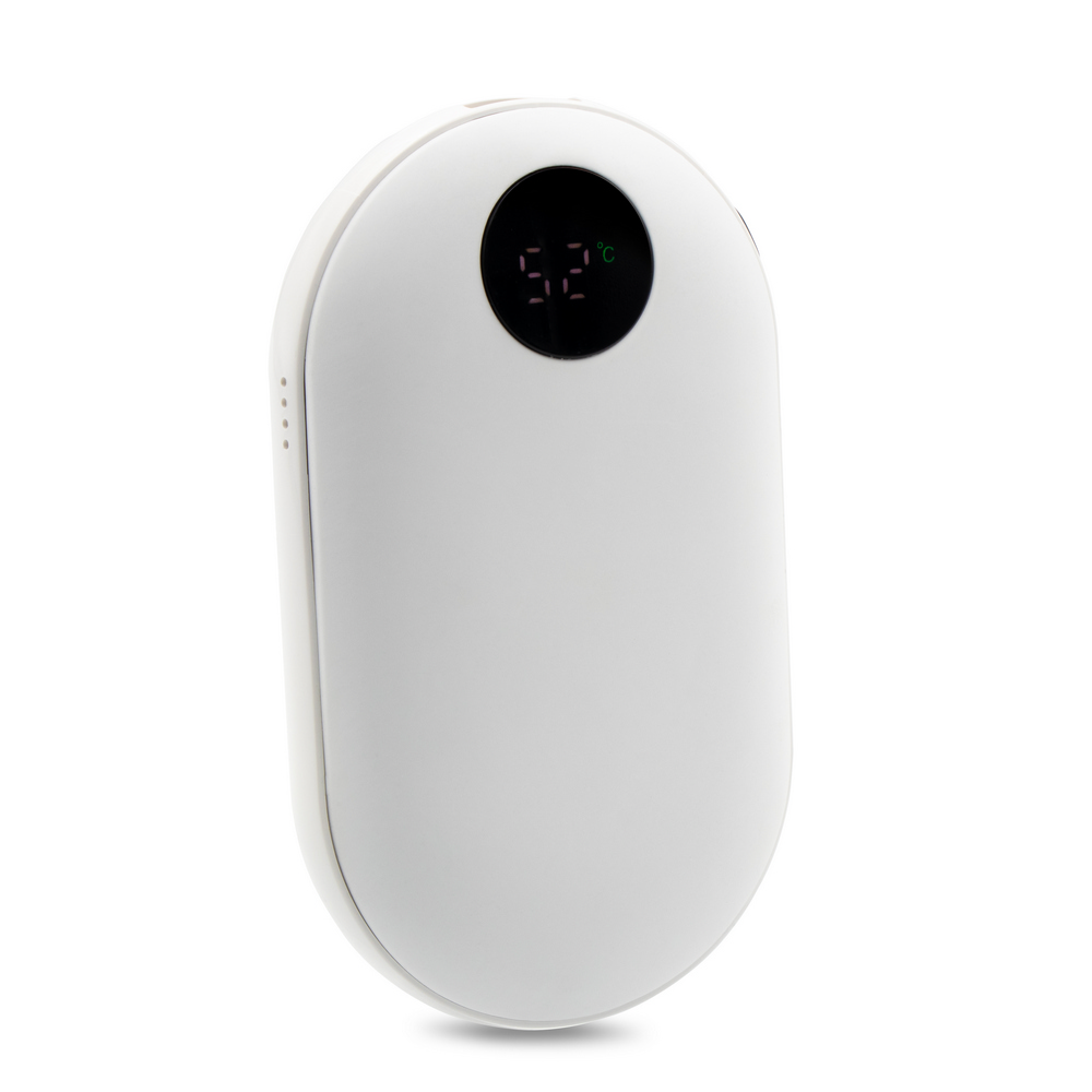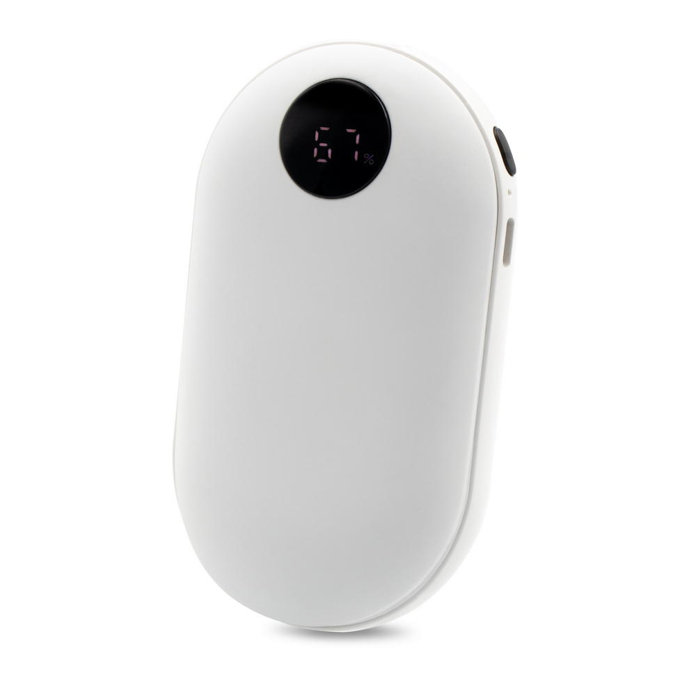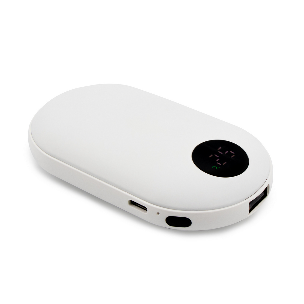 Entdecken Sie die vielseitige Powerbank „Elia“ mit 5000 mAh Kapazität, die nicht nur Ihre Geräte mit Energie versorgt, sondern auch Ihre Hände wärmt. Die gummierte Oberfläche sorgt für ein angenehmes Gefühl, während die Handwärmfunktion in drei Intensitätsstufen (42-47-52°C) für wohlige Wärme sorgt. Mit einem USB-Ausgang von 5V/2A und einem USB-C-Eingang von 5V/2A ist sie vielseitig einsetzbar. Das digitale Display zeigt den Batteriestand an, und eine volle Ladung bietet bis zu 6 Stunden Handwärme. Kompakt und leicht (130 g), ist sie der ideale Begleiter für unterwegs. Inklusive USB-C-Kabel.