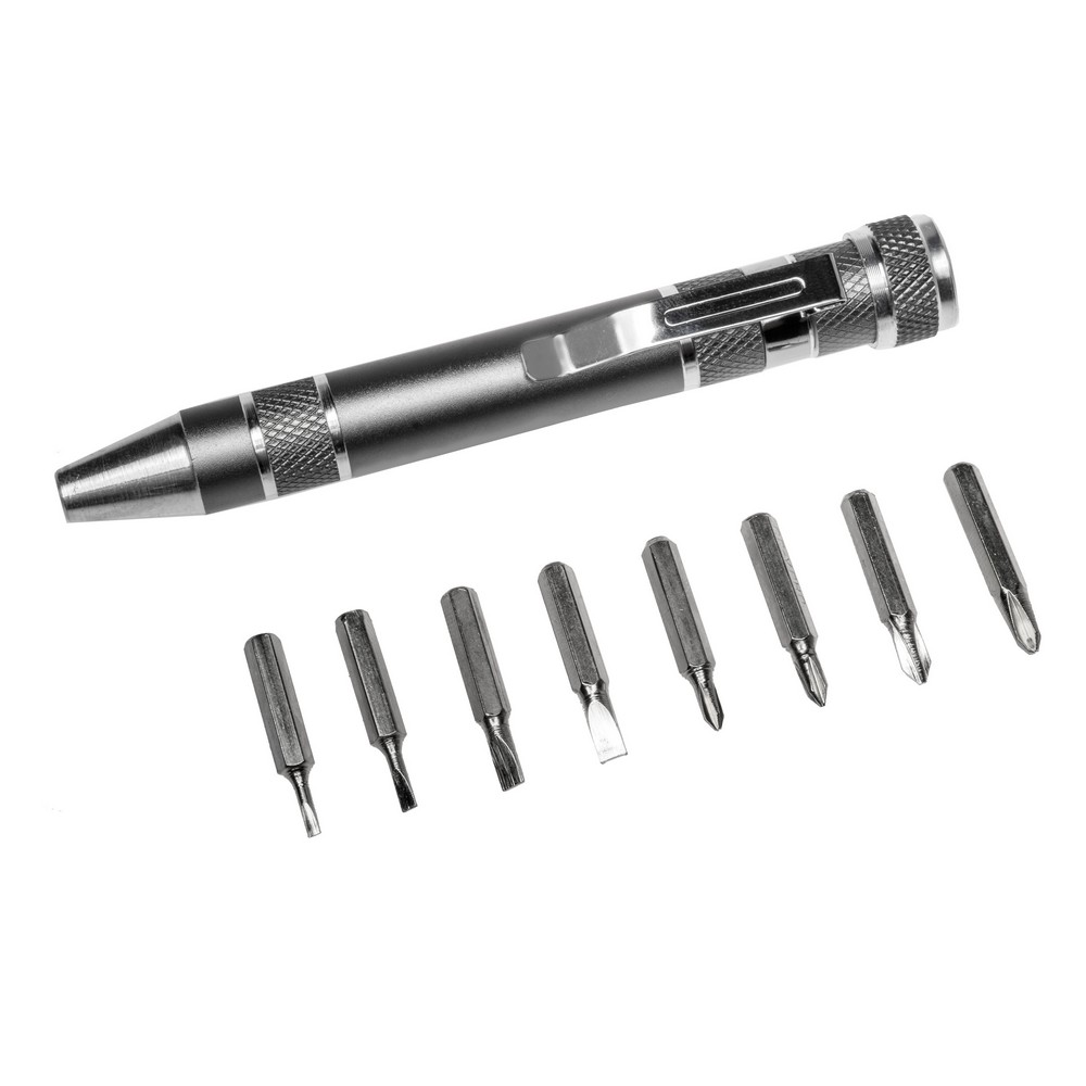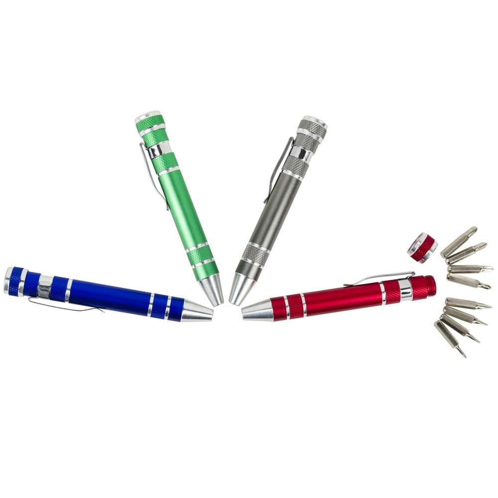 Entdecken Sie den vielseitigen Schraubendreher „Damiano“ – Ihr unverzichtbarer Begleiter für präzise Arbeiten. In Form eines eleganten Stifts gestaltet, bietet er 4 Flachkopf- und 4 Kreuzschlitz-Bits, die mühelos ausgetauscht werden können. Der praktische Clip ermöglicht es, ihn stets griffbereit zu haben. Gefertigt aus robustem Aluminium und Stahl, ist er leicht und langlebig. Mit einer kompakten Größe von 10,8 x 2,2 x 12 cm und einem Gewicht von nur 40 g passt er in jede Tasche. Erhältlich in den Farben Blau, Rot, Schwarz, Grau und Hellgrün – ein Must-have für jeden Handwerker!