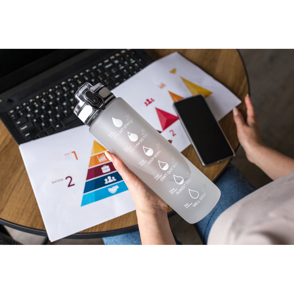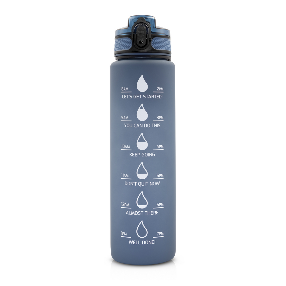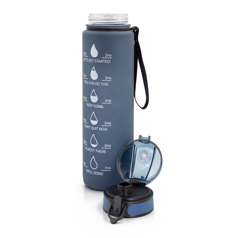 Entdecken Sie die Sportflasche „Nordi“ – Ihr perfekter Begleiter für aktive Tage! Mit einem großzügigen Fassungsvermögen von 1000 ml hält sie Sie stets hydriert. Die praktische ml-Skala auf der einen und die motivierende Skala auf der anderen Seite helfen Ihnen, Ihre Trinkziele zu erreichen. Der sichere Deckel mit Verschluss und die handliche Trageschlaufe machen sie ideal für unterwegs. Die gummierte Oberfläche sorgt für einen festen Griff. Perfekt für kalte und stille Getränke, ist die „Nordi“ in stilvollem Weiß und Dunkelblau erhältlich. Bleiben Sie erfrischt und motiviert – jeden Tag!